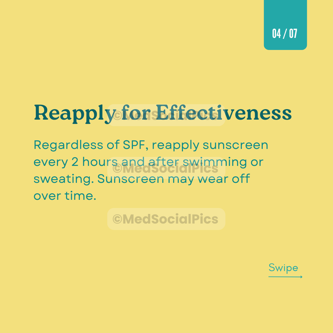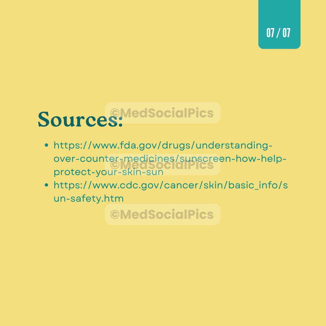 Social media carousel (multiple-image post) template on SPF of Sunscreen. Minimal and clean design. Bite-sized health information with references. Easily educate and engage your followers with information regarding SPF of Sunscreen. Add your logo and branding to make it your own. You can use this post on multiple social media platforms such as Facebook, Instagram, TikTok, etc. Each MedSocialPics carousel (multiple-image post) contains 6 - 10 images.